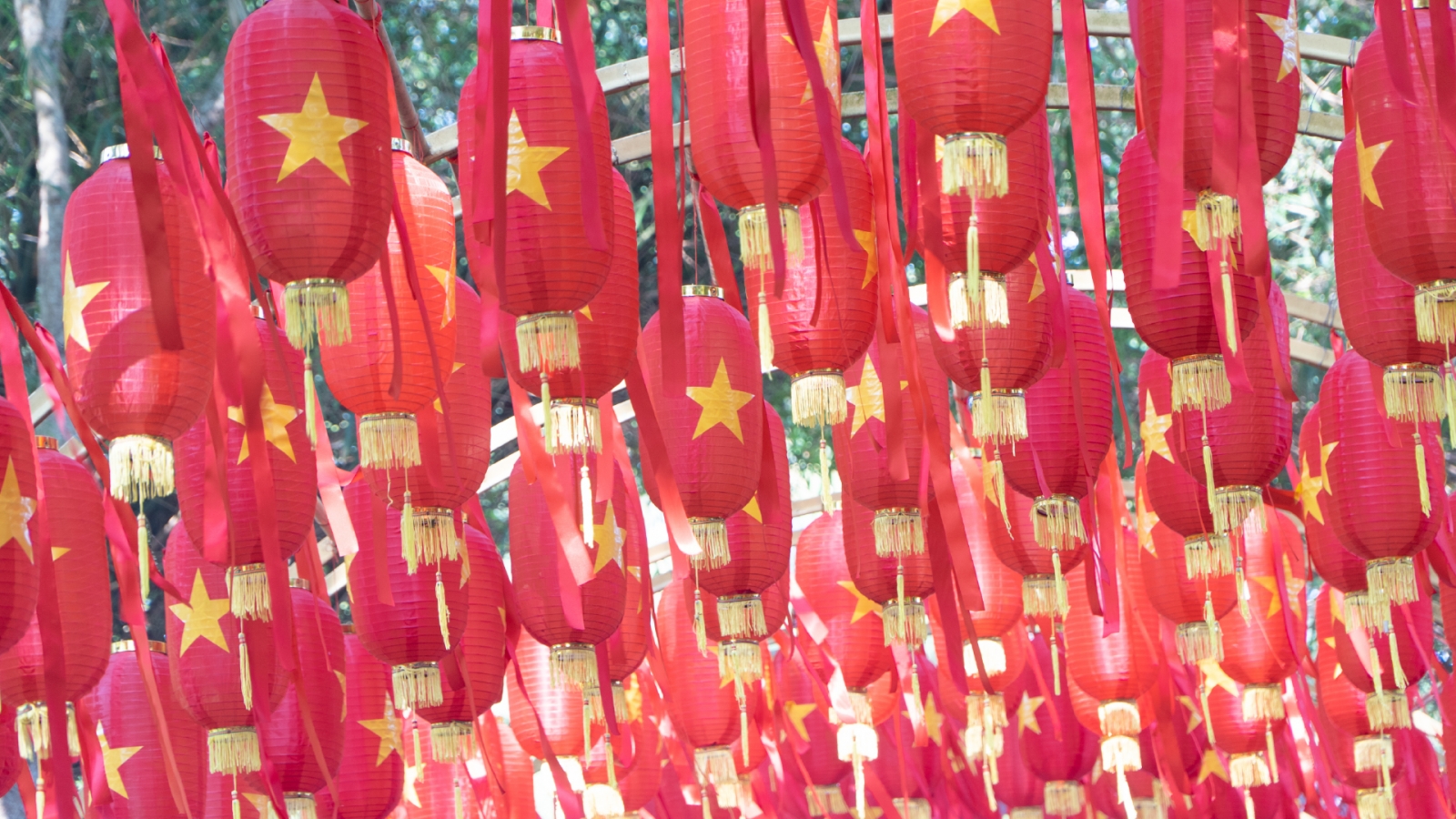 Bước vào trong, không gian càng trở nên lộng lẫy hơn với khu vực lồng đèn treo rợp trời.