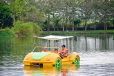 Một xe thường chỉ dùng cho hai người và bạn phải mang trên người áo phao cứu sinh để đảm bảo an toàn. Từ điểm xuất phát bạn sẽ thoải mái tung tăng dạo một vòng khắp hồ với ngọn gió nhẹ nhàng phảng phất, mặt nước đôi khi gợn vài con sóng nhỏ lăn tăn phản chiếu nền trời trong xanh.